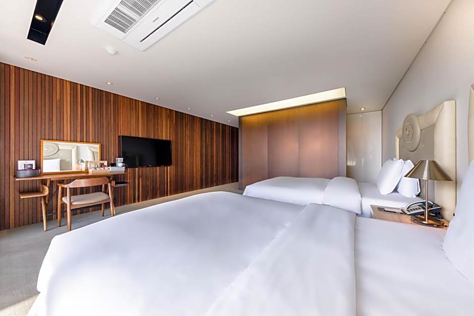 Housed in a private building, this apartment comes with a living room, bedrooms, 3 bathrooms and 4 toilets. The apartment features floor-to-ceiling windows and wooden floors. Please note that KRW 110,000 applies for one-time use of hot water in the private pool. Reservation is required at least 1 day in advance. The apartment has an outdoor pool and an entertainment floor. A private movie theater room and karaoke facilities are also available. This room type comes with Esthederm Spa 20% discount.